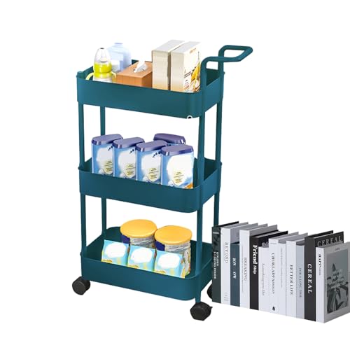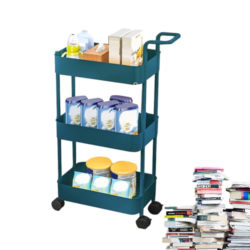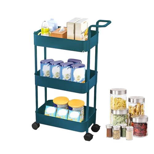 ⋑Strumento per risparmiare spazio: carrello multiuso su ruote per stoccaggio efficace: sposta e riponi senza sforzo i tuoi oggetti essenziali in spazi ristretti con questo elegante carrello. Il suo design sottile consente di risparmiare spazio mentre le rotelle lisce e la maniglia ergonomica offrono una mobilità ottimale.