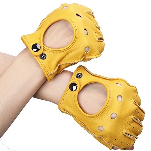 NJHGJ Guanti Guanti Da Uomo Vintage Guanti Senza Dita Gialli Guanti Da Guida Resistenti All'Usura Guanti In Pelle Guanti Da Moto Yellow S