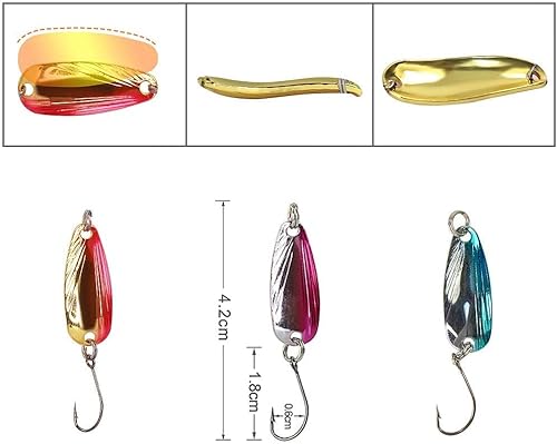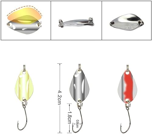 Dimensioni e peso: con 2,5 - 3 g e 3 cm di lunghezza con 1,2 cm di larghezza. Il set di accessori da pesca perfetto per la pesca alla trota arcobaleno, trota di mare, trota di salmone, trota di ruscello e per la pesca alla trota in generale. Utilizzabile anche come esca per pesce persico