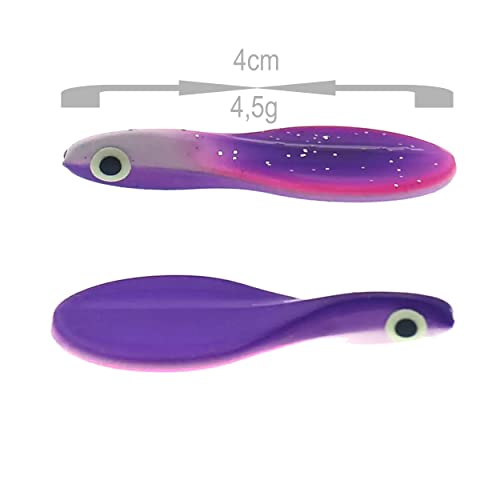 Set di lampughe passanti per trote con vernice speciale: tutti i cucchiaini per trote sono attivi ai raggi UV e sono dotati di occhi 3d autoilluminanti per garantire la massima visibilità in acque torbide, al crepuscolo o durante la pesca notturna