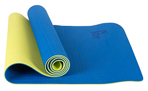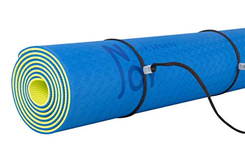 Njoy TPE, tappetino da yoga, ginnastica, fitness, con tracolla, spessore 183 x 61 x 0,6 cm, ideale per pilates, sostenibile, privo di sostanze nocive e antiscivolo, colore: blu/giallo