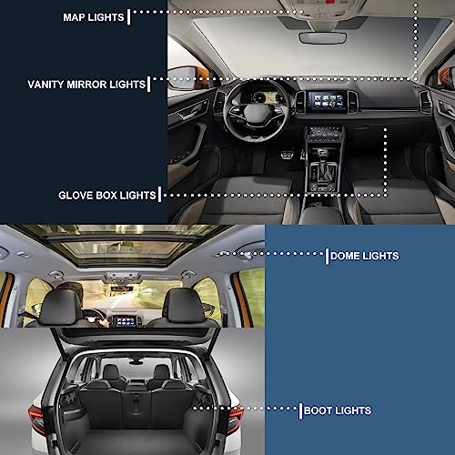 ✔️Prestazioni affidabili: alimentato da chip LED SMD di alta qualità, 3 volte più luminosi delle luci di serie, maggiore durata e minor consumo energetico. Canbus senza errori, non devi preoccuparti di sfarfallio o messaggi di errore del cruscotto