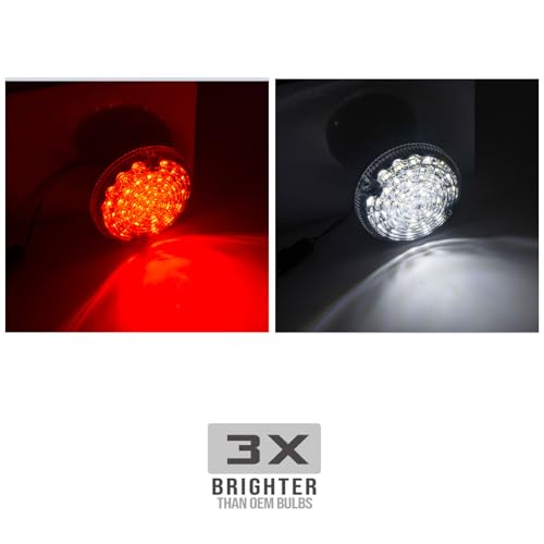 ✔️Caratteristiche: 2 pezzi di luci a LED posteriori di forma rotonda da 95 mm con lenti trasparenti, ogni pezzo è alimentato da diodi LED SMD ad alta potenza con un'eccellente uscita di illuminazione a strisce. Lunga durata, alta efficienza lavorativa e basso consumo energetico.