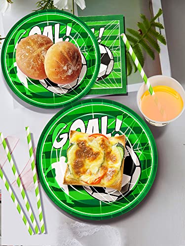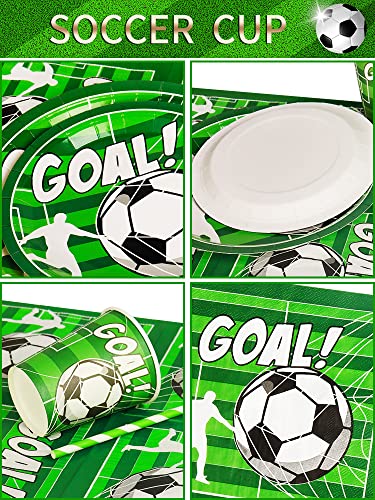 ⚽【Calcio Stoviglie per Feste】Il set per feste Calcio include tutte le forniture necessarie per le decorazioni di Calcio. Include 25 piatti (9 pollici), 25 piatti (7 pollici), 25 bicchieri di carta, 25 tovaglioli, 25 da Cannucce e 1 tovaglia. Può soddisfare le esigenze di 20 persone, utilizzare questo squisito servizio da tavola per feste per rendere perfetta la tua festa di Calcio.