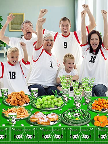 ⚽【Design Unico Del Calcio】Questo pacchetto standard per le feste di calcio ha tutte le forniture di base per le feste e contiene tutte le stoviglie di cui hai bisogno in un kit. Perfetto non solo per la festa di compleanno a tema calcio dei tuoi bambini, ma anche per le celebrazioni di fine stagione degli amanti del calcio. l'utilizzo di questo set di decorazioni per feste di compleanno renderà la tua festa più impressionante.
