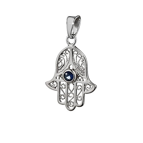 NKlaus Ciondolo in argento 925 placcato in rodio con zircone blu Mano di Fatima 20x16 mm Occhio di Fatima 7431