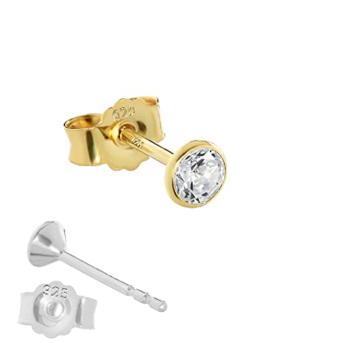 NKlaus orecchini singoli a perno da 3,4 mm Orecchini in argento 925 placcati oro giallo con zirconi 10322