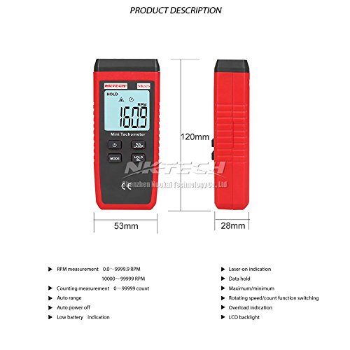 nktech nk373 è un affidabile e senza contatto contagiri digitale utilizzato per misurare la velocità di rotazione di motori e altre macchine.
