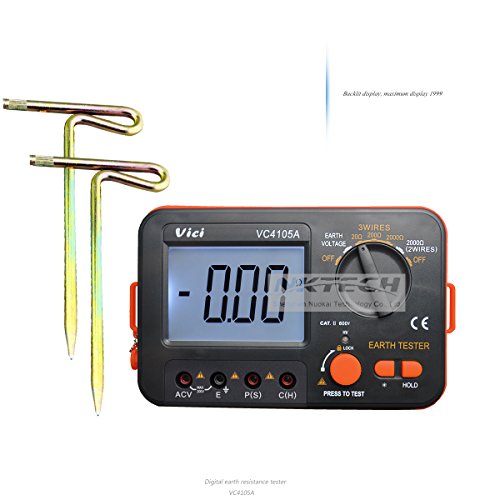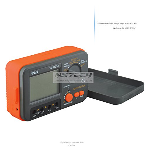 (NKTECH VC4105A) Intervallo di resistenza alla terra: 0-1999Ω. Intervallo di tensione di terra: 0-199,9 V.