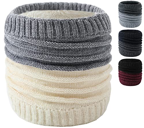 NLAND Sciarpa Da Uomo Invernale Sciarpa Unisex a Collo Alto Elastico in Maglia Fodera in Pile Ad Anello Sciarpa Calda E Antivento Spessa Sciarpa Da Sci Da Ciclismo(Grigio chiaro+Bianco,Taglia Unica)