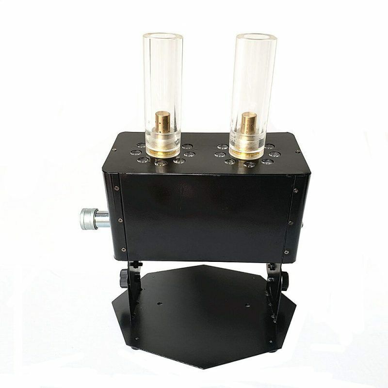 Coppia di Macchine CO2 a doppio getto Jet Strong 18x3W LED RGB 3In1 con Tubi Trasparenti e 2 Teste Voltage: 110 VAC 50/60HZ (220 VAC Available)Power: 300 WLED light source: 18pcs RGB 3In1 LEDLED Color: R/G/B/Mixed ColorDMX Channel: 6 ChannelsControl Mode: DMX 512Pressure Rating: Up to 1400 psi (96 bar)Spray height:20'-30' Feet (8-12 meters) (depending on humidity)Packing Size: 47 x 43 x 55 cmGross Weight: 11.2KgPacking weight: 23Kg DMX Instruction:6 channels as below:Channel 1: CO2 spray (0-255) ON.Channel 2: LED in blue, (0-255) LED lights up gradually.Channel 3: LED in green, (0-255) LED lights up gradually.Channel 4: LED in red, (0-255) LED lights up gradually.Channel 5: LED color mixing, (0-255) LED color mixes.Channel 6: LED strobe, (0-255) getting faster.Warning: CO2 Blasts cannot exceed 10 seconds in length for each blast;