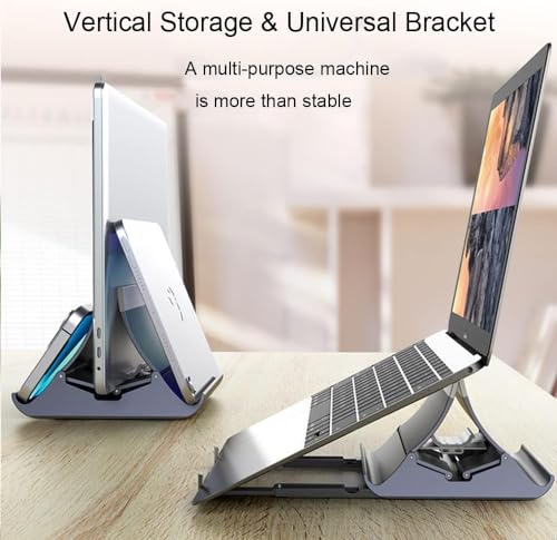 Supporto solido: il supporto verticale in alluminio è molto robusto. Mantiene il tablet in posizione verticale e non si muove o si muove con il laptop sul supporto. È ideale per l'uso su un tavolo in cui il laptop è collegato al monitor e alla tastiera. Questo supporto verticale per laptop è dotato di cuscinetti in gomma per proteggere la superficie del laptop.