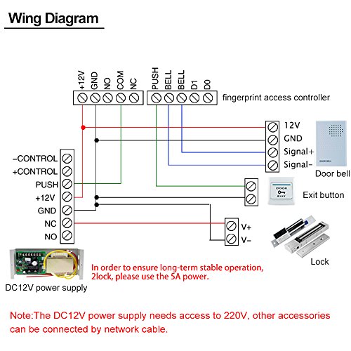 NN99 Kit sistema di controllo accessi per porta impronte digitali RFID Biometrico + alimentatore DC12V / 3A + pulsante di uscita + schede chiave 10pcs125KHz, senza serratura elettrica