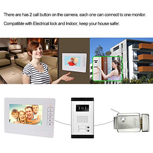 NN99 Videocitofono campanello citofono Kit sistema 7 pollici chiaro display IR Solo movimento porta visione notturna campanello 2 monitor per casa/appartamenti