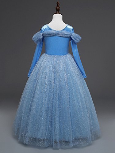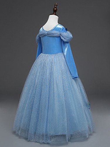 NNDOLL Cenerentola Vestito Costumi Carnevale Bambina Bimba Principessa Azzurro Abito 870 (150 (7-8 Anni)
