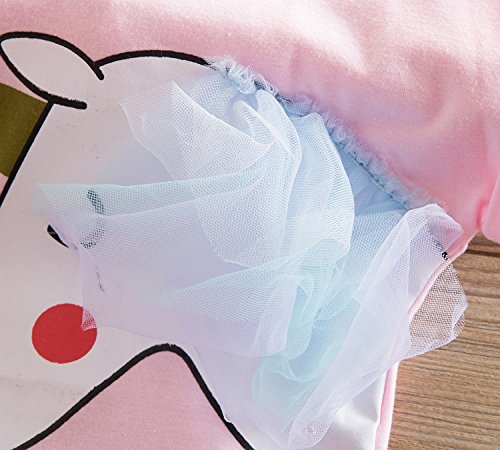 NNJXD Bambine Vestono Abiti Unicorno 2 Pezzi Top Rosa + Gonne Arcobaleno Dimensione(110) 3-4 Anni Rosa