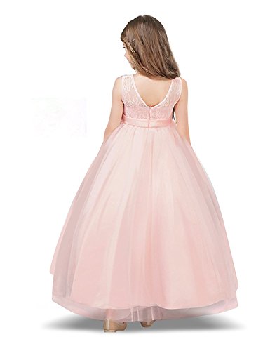 NNJXD Garza di Pizzo per Ragazze Abito da Sposa Vestito della Principessa Taglia(160) 10-11 Anni Rosa