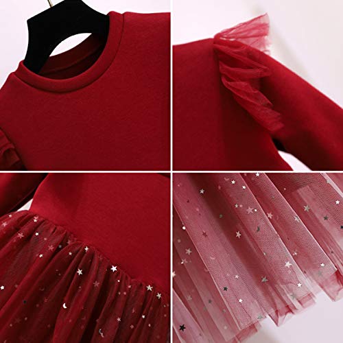 NNJXD Ragazza Vestito Lungo Maniche Bling Stelle Stampato Tutu Compleanno Principessa Vestito Taglia150(7-8 Anni) 1220 Rosso-A