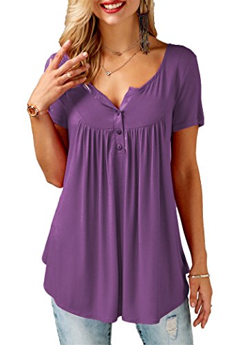 Noabat Viola Blu Camicie per Donna Tunica Top Camicetta Corta Manica con Scollo a V Piccola