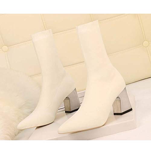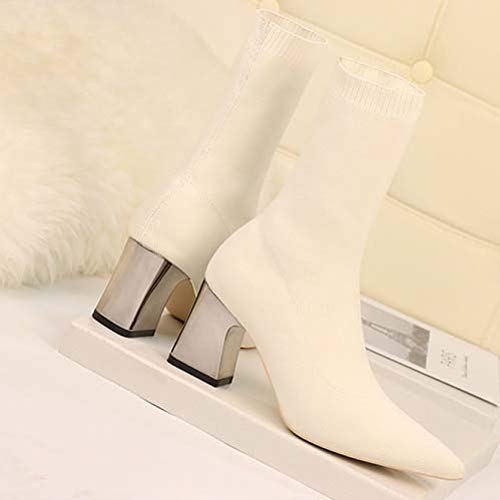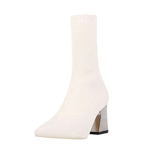 NOADream Stivali Tacchi per donna Stivaletti elasticizzati alla moda Stivaletti con punta a punta Stivali da moto alla moda con tacco largo