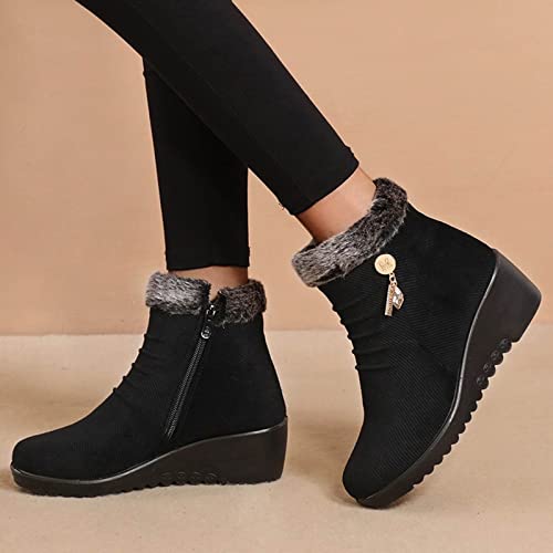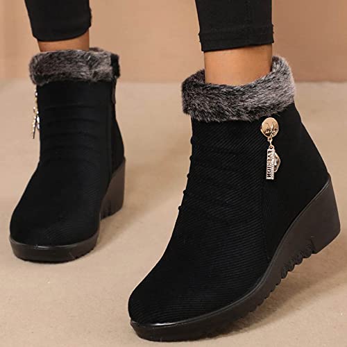 NOAGENJT Stivaletti da donna con comodi donna stivali donna stivali inverno donna neri Snow Boots boots donna Scarpe Stivali col tacco Inverno Stivaletti con punta tonda (Nero,36 EU)