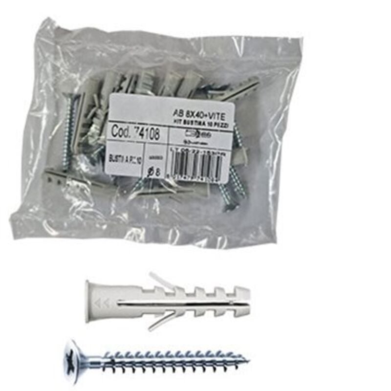 In nylon, con bordo ed alette antirotazione, col. grigio. In buste da 10 tasselli + 10 viti.