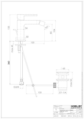 Nobili rubinetterie UP94119/1CR Up Miscelatore Monocomando per Bidet, Scarico 1 1/4 Pollici, Cromo