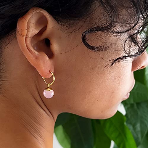 Noble Nature Boho - Orecchini placcati in oro 24 carati, con pietre naturali e acciaio INOX dorato, colore: Quarzo rosa