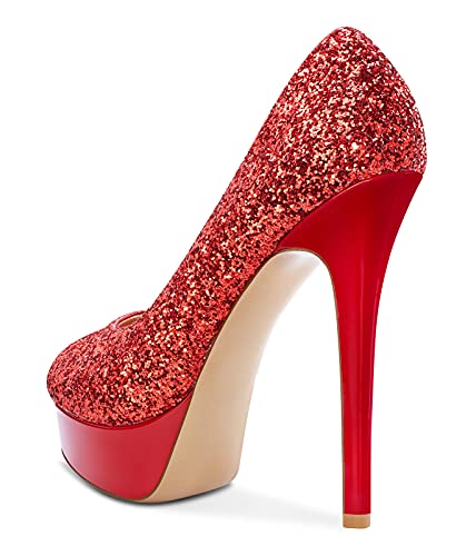 NobleOnly Donna Platform Peep Toe Fodera in Pelle Scarpe col Tacco 13CM Plateau High Heels Rosso Glitter Scarpe EU41