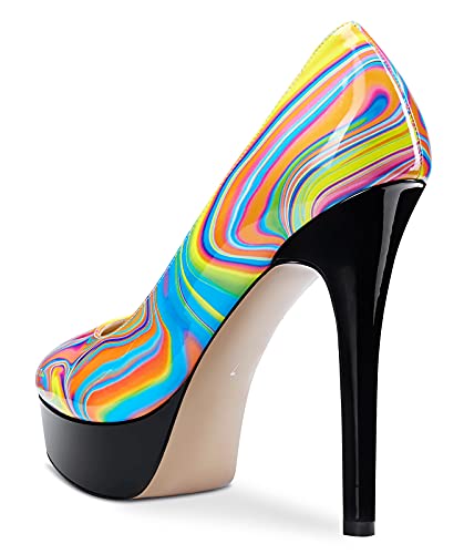NobleOnly Donna Platform Scarpe col Tacco Fodera in Pelle Tacco a Spillo 13CM Plateau High Heels Multicolore Arcobaleno Scarpe EU40