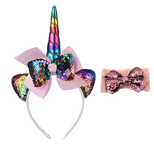 Nobrand Cerchietto Unicorno, 2 Pezzi Fascia Fiocco Capelli Bambina Ragazze, Cerchietto per Capelli Perfetta per Feste Compleanno Natale Halloween Giochi di Ruolo Cosplay