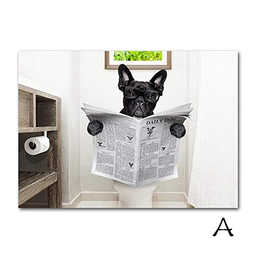Nobrand Nordic Poster Cane Lettura Giornale Tela Pittura Muro Arte Divertente Cane Toilette Art Poster Decorazione Immagini da Parete per Bagno-30X40cm X4P Senza Cornice