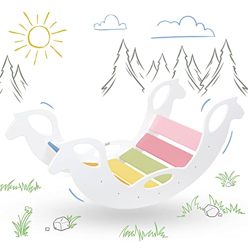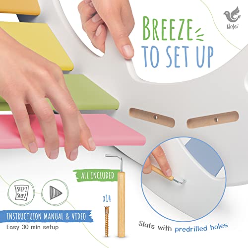 Nobsi Arco di Arrampicata per Bambini - Altalena ad Arco in Legno per Interni | Altalena per Arrampicata in Legno Fatta a Mano | Set di Triangoli con Facile Montaggio - Cavallo Bianco/Multicolore