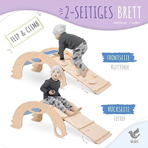 Nobsi Scala per Scivolo e Scala a chiocciola in Stile per L'Arco di Arrampicata | Triangolo di Arrampicata Montessori | Struttura per Arrampicata per Bambini e Ragazzi - Birdie Naturale/Blu