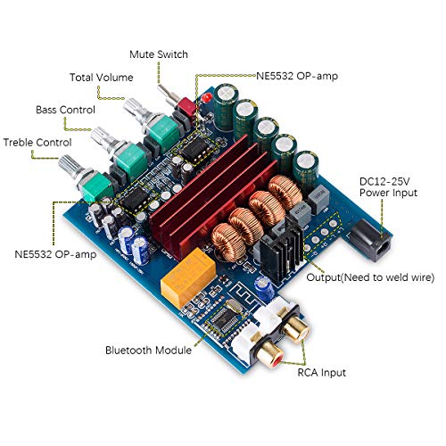 Nobsound Scheda con chip amplificatore HiFi Stereo, da 200 W TPA3116D2, 2.0, amplificatore di potenza digitale, con tecnologia Bluetooth 4.2, per altoparlanti, sistemi audio per auto, controllo dei bassi e alti