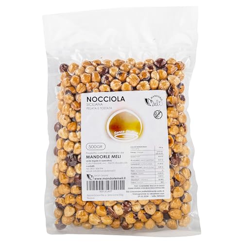 Nocciole Siciliane Pelate e Tostate - Frutta Secca Fonte di Vitamine e Fibre - Senza Glutine (500g)