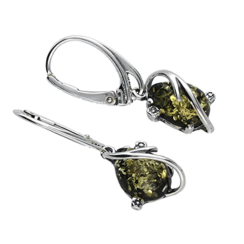 Orecchini pendenti in argento Sterling con farfalla sul retro in ambra verde, orecchini in argento stile Art Déco, perfetti per gli amanti dei gioielli in ambra.
