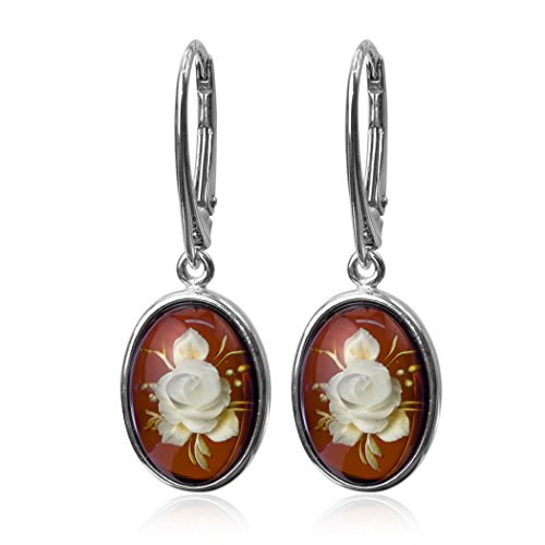 Noda Ambra Argento Sterling Cammeo Ovale Fiore Orecchini