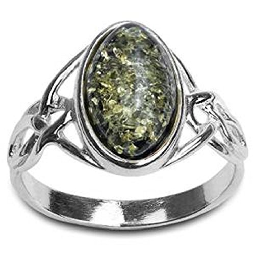 Noda Anello in Argento Sterling e Ambra Verde Celtico