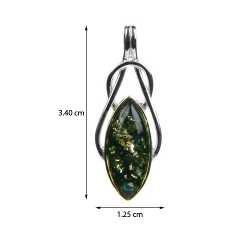 Noda Verde Ambra Argento Sterling Ciondolo Goccia Catena 46 cm