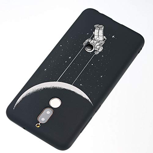 Nodigo Cover Compatibile con Huawei Mate 10 Lite Silicone Nero con Disegni Motivo Gomma Antiurto Creativo Matte Case Resistente Protettiva Bumper Belle Kawaii Colorate Custodia - Astronauta Luna
