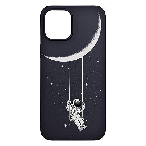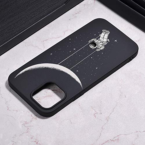 Nodigo Cover Compatibile per iPhone 12/12 PRO Silicone Nero con Disegni Motivo Gomma Antiurto Creativo Matte Case Resistente Protettiva Bumper Belle Kawaii Colorate Custodia - Astronauta Luna