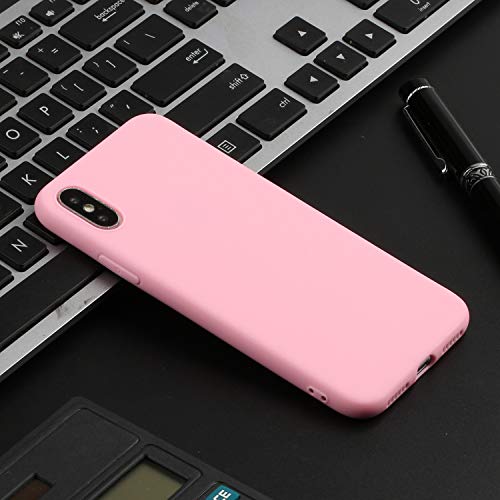 Nodigo Cover Compatibile con iPhone XS/iPhone X Silicone Tinta Unita con Disegni Motivo Gomma Antiurto Creativo Matte Case Resistente Protettiva Bumper Belle Kawaii Colorate Custodia - Rosa