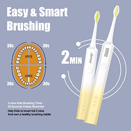 NOHOO Spazzolino elettrico per adulti e bambini, kit di igiene orale ricaricabile per la casa, 3 modalità di spazzolino da denti e 4 testine di ricambio incluse (Piccolo + Grande, Giallo)