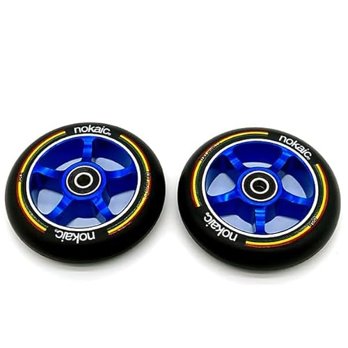 NOKAIC Set di 2 ruote da 100 mm per monopattino Freestyle, gomma nera, nucleo in alluminio, colore blu