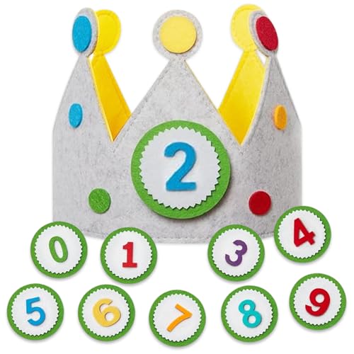 NOKDAL Corona di Compleanno Stoffa Corona Compleanno Bambina Ragazzi Cappellini Festa Compleanno Bambini Cappello da Festa di Compleanno Corona Bambino con Numeri da 0 a 9 per compleanno decorazioni