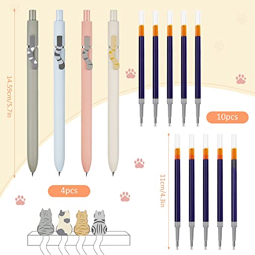 NOKDAL Set di 4 Penne a Sfera Gel Retrattile Penne a Scatto Punta Fine 0.5 mm Penne Inchiostro Nero Ricaricabili e 10 Ricariche Blu per Adulto, Bambino, Studio, Ufficio
