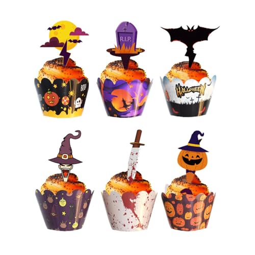 NOKDAL 48 Pezzi Decorazioni Cupcake Halloween Cupcake Wrapper Topper Halloween Cupcake Decorazioni Muffin Halloween Topper Torta Halloween Stuzzicadenti Decorativi Halloween Zucca Pipistrello