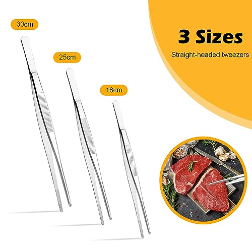 3 pinzette da cucina lunghe: riceverete 3 pinze cucina acciaio di diverse lunghezze: una da 30 cm, una da 25 cm e una da 18 cm, utilizzabili a 360° per soddisfare qualsiasi esigenza di cottura.