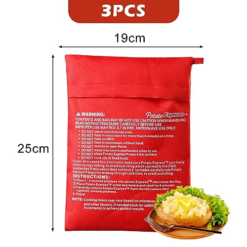 NOKDAL 3 Pcs Sacchetto Patate Microonde Sacchetto per Cuocere Patate al Microonde Riutilizzabili Sacco Cuoci Patate Microonde Lavabili Microonde Patata Fornello Borsa Rosso 25 * 19 cm